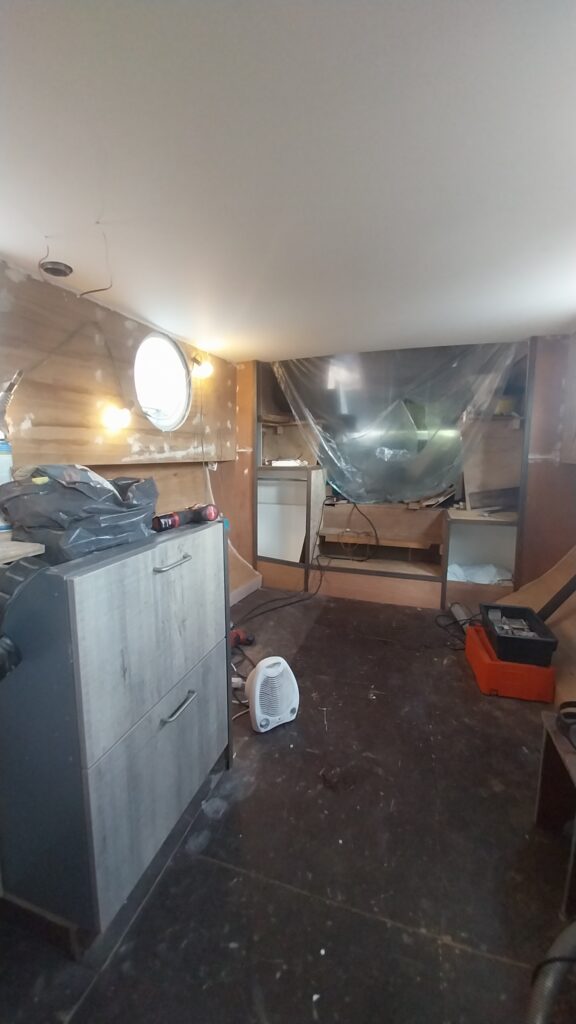 Het casco en de opbouw zijn klaar en de kuip ook, wij gaan nu verder met de betimmering binnen. Zodra Jane redelijk waterdicht is gaat ze het water in. Het timmerwerk van binnen, en de stuurhut, daar zijn we ook nog wel even mee bezig…Jan is Jane ook wel eens zat, dus het gaat gestaag. Het duurt nog even voordat we met gasten een dagje kunnen gaan varen. Maar het gaat wel gebeuren!
